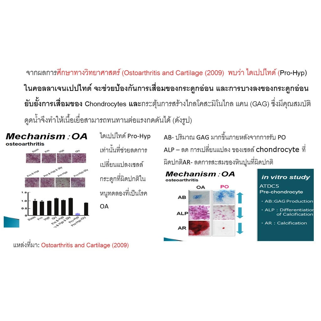 Joint Health: The PO dipeptide helps prevent cartilage degeneration and thinning by inhibiting chondrocyte degradation and stimulating GAG production, which keeps joint tissues hydrated and cushioned to help reduce joint pain and stiffness.